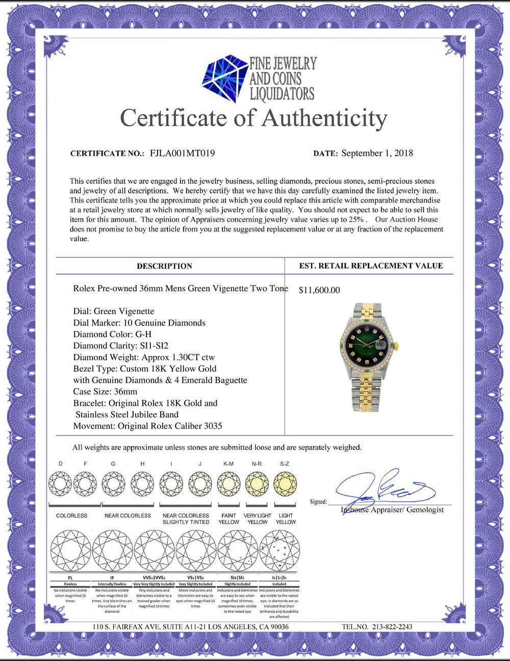 WORLD JEWELRY AUCTION believes to the best of its knowledge that the information presented in any listing has come from reliable sources. Such information is presented solely for the convenience of the Purchaser. WJA makes no warranties of any kind related to the information presented in any listing. WJA further makes no warranties, either express or implied, relating to the value, marketability or condition of the lot described in any listing. Prospective bidders should investigate a lot thoroughly before bidding. By bidding the Bidder acknowledges that Bidder has investigated the lot to his or her satisfaction, or, that Bidder has chosen not to do so, and agrees to accept the lot being bid on with no objections after the sale closes. If you are uncertain please contact us with your questions prior to bidding. If you are still uncertain after we reply, please refrain from bidding. Photos other graphic material contained in any listing of generic or duplicate lots may be stock presentations and not necessarily of the specific lot.