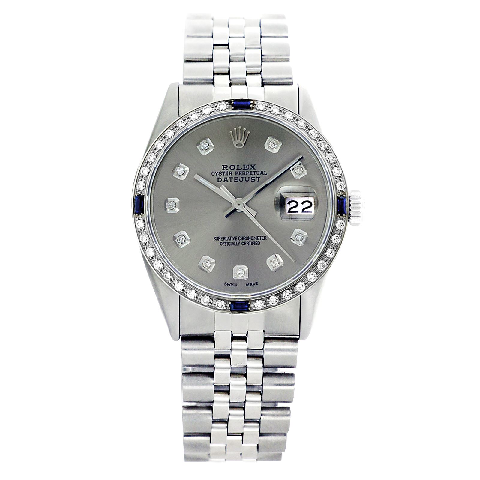 Bezel Type: Custom 18K White Gold with Genuine Diamonds and 4 Sapphire Baguette