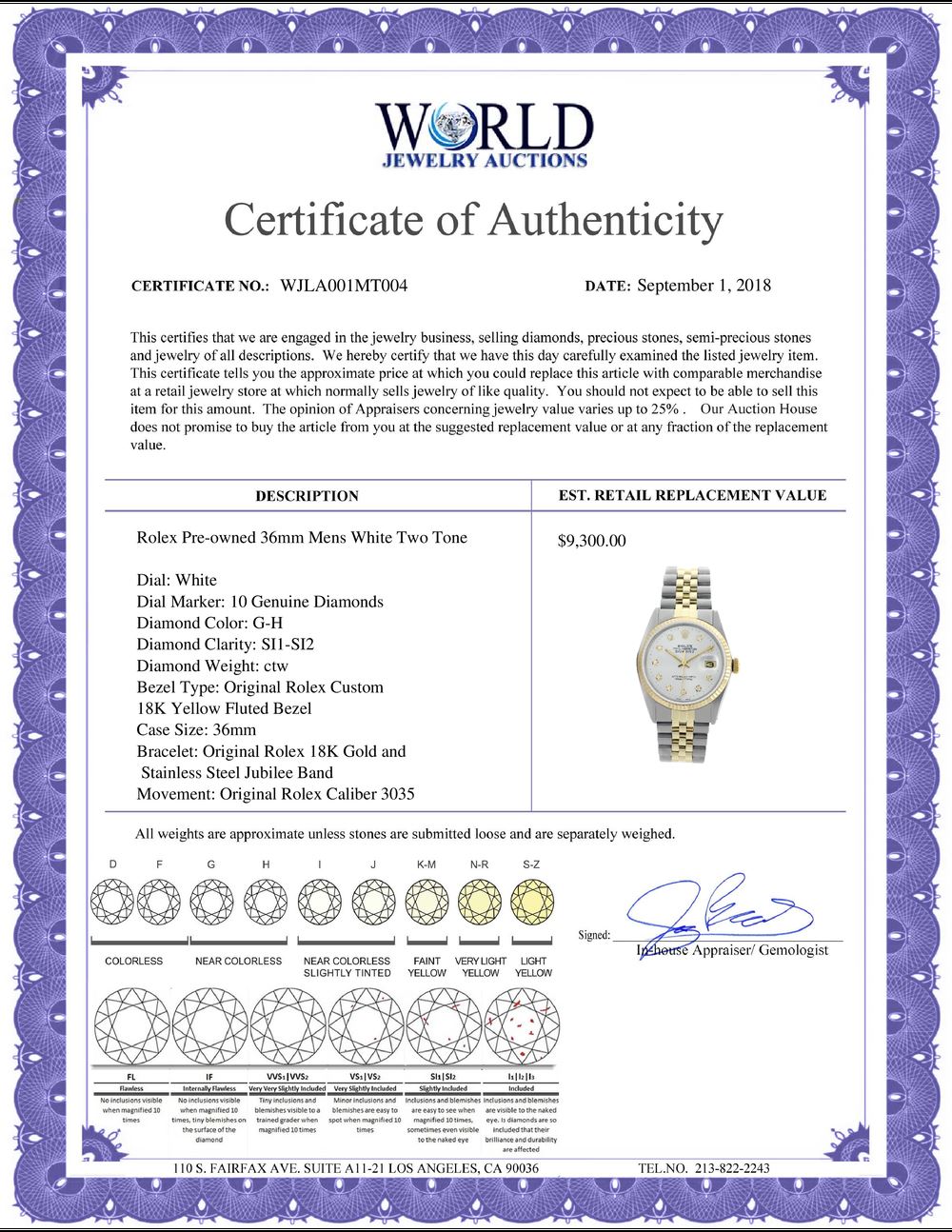 Rolex Pre-owned 36mm Mens White Two Tone - SKU: LA001MT004