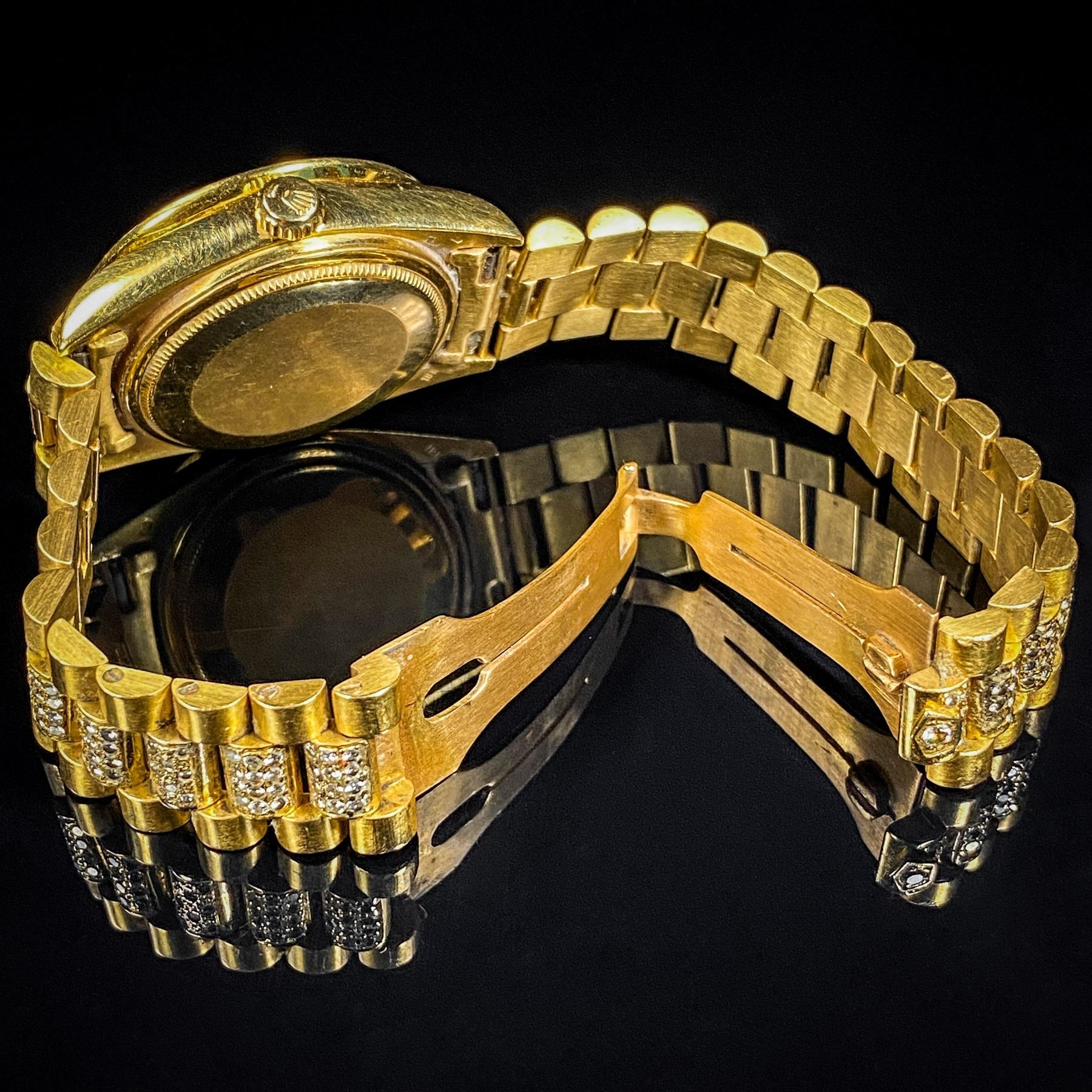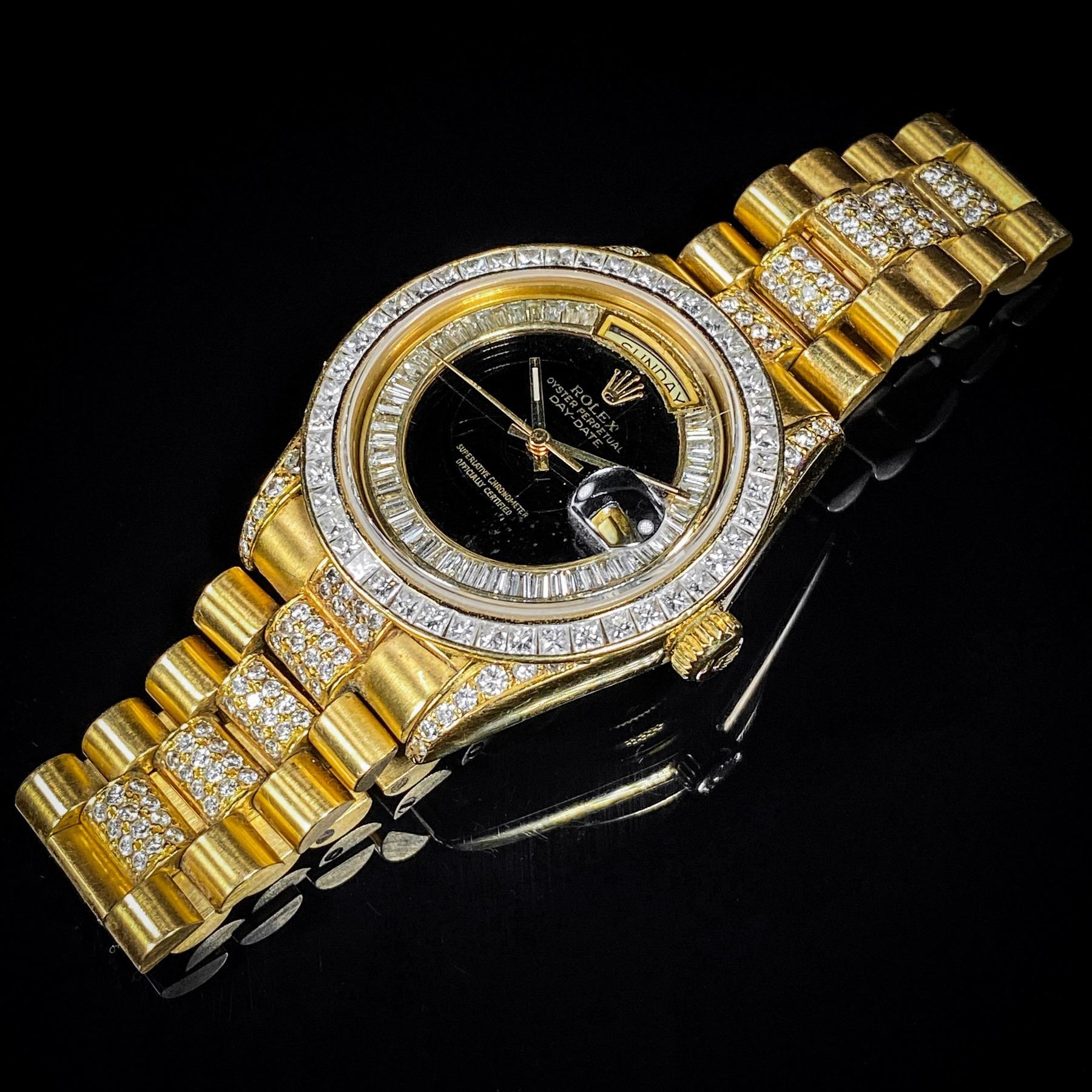 Rolex Pres. Day-Date Dia & 18K Gold, Black & Dia. Dial W/ Dia. Bezel