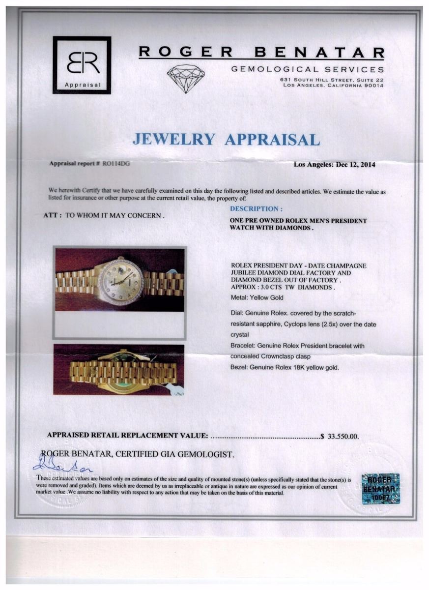 Rolex President Day date Champange Jubilee Diamond Dial Factory and Diamond Bizel out of factory DEVVS about 3.00ct
