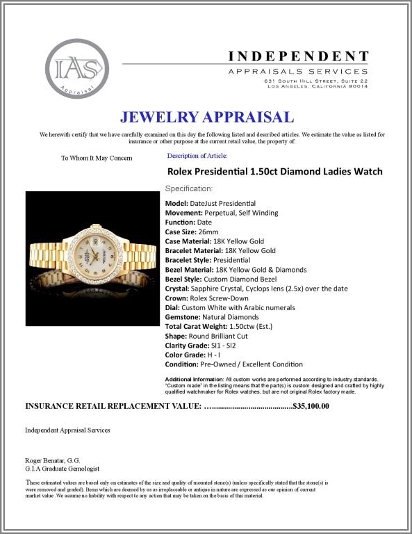 Regarding Appraised Jewelry and Loose Stones - Auctionfarm sends them out to a third party for Retail Replacement Value Appraisals, which are the most common. These types of evaluations are written for insurance needs. This would be the cost to replace the jewelry with an item of equal quality and kind, considered to be the current market price or the replacement value. This type of appraisal is done to protect you in the event of damage or loss of a valuable item. Our appraisals are conducted by independent 3rd Party appraisal firms that utilizes Certified GIA Gemologist. Appraisals should be used for verification of gemstone and/or metal weight, size, and grade only, not actual value. Appraisal value should be considered for insurance purposes only, not actual value, as price varies greatly from retail locations thru out the world. Items should not be purchased with the expectation to resell for appraisal price, or for profit.