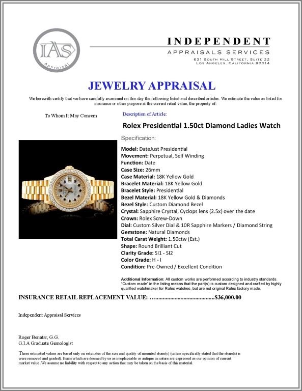 Regarding Appraised Jewelry and Loose Stones - Auctionfarm sends them out to a third party for Retail Replacement Value Appraisals, which are the most common. These types of evaluations are written for insurance needs. This would be the cost to replace the jewelry with an item of equal quality and kind, considered to be the current market price or the replacement value. This type of appraisal is done to protect you in the event of damage or loss of a valuable item. Our appraisals are conducted by independent 3rd Party appraisal firms that utilizes Certified GIA Gemologist. Appraisals should be used for verification of gemstone and/or metal weight, size, and grade only, not actual value. Appraisal value should be considered for insurance purposes only, not actual value, as price varies greatly from retail locations thru out the world. Items should not be purchased with the expectation to resell for appraisal price, or for profit.