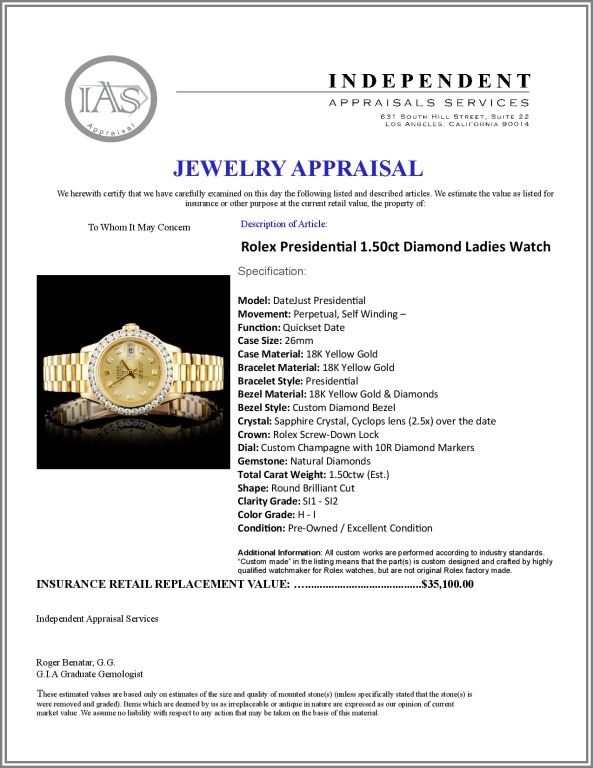 Regarding Appraised Jewelry and Loose Stones - Auctionfarm sends them out to a third party for Retail Replacement Value Appraisals, which are the most common. These types of evaluations are written for insurance needs. This would be the cost to replace the jewelry with an item of equal quality and kind, considered to be the current market price or the replacement value. This type of appraisal is done to protect you in the event of damage or loss of a valuable item. Our appraisals are conducted by independent 3rd Party appraisal firms that utilizes Certified GIA Gemologist. Appraisals should be used for verification of gemstone and/or metal weight, size, and grade only, not actual value. Appraisal value should be considered for insurance purposes only, not actual value, as price varies greatly from retail locations thru out the world. Items should not be purchased with the expectation to resell for appraisal price, or for profit.