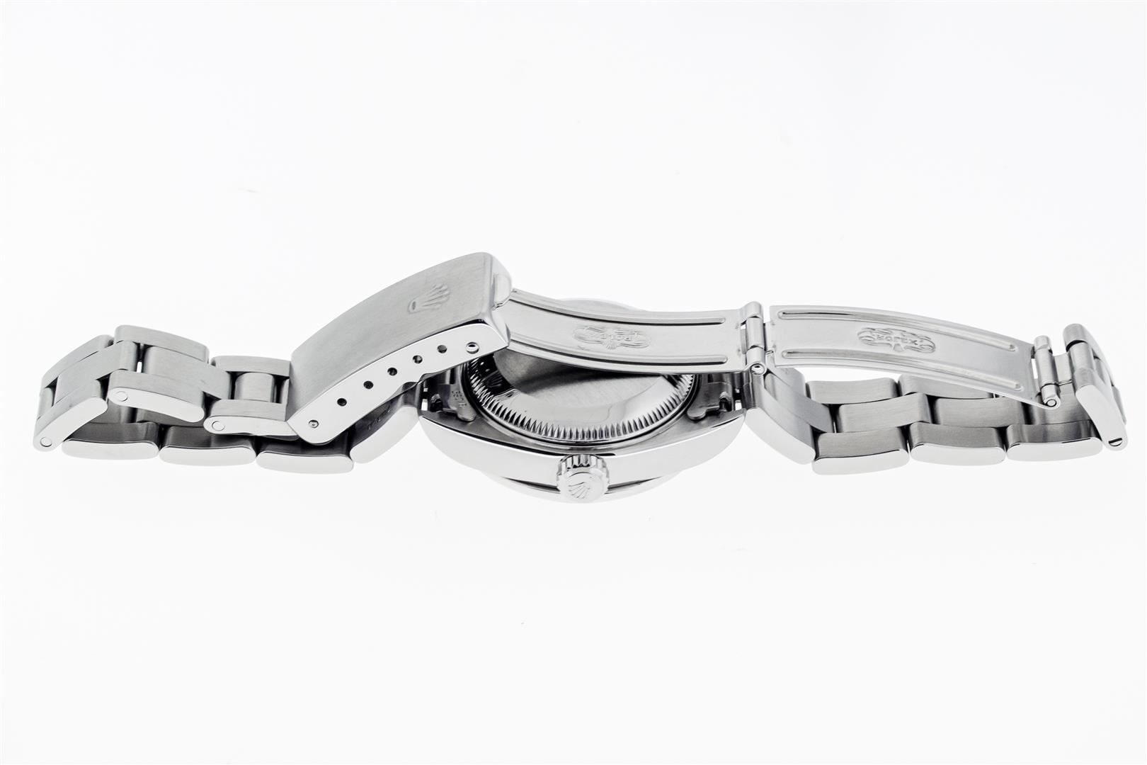 One Ladies Pre Owned Quickset Stainless Steel Rolex Datejust Polished Bright with Satin Finish, Serviced & Electronically Tested, Stainless Steel Case: 26mm, Rolex Stainless Steel Crown, Custom Bezel: New 18K White Gold Emerald Bead Set Diamond Bezel, Diamond + Gem Count: 28 Diamonds + 4 Emeralds. Custom Crystal: New Sapphire With Magnified Date Window. Custom Hands: New Luminescent Hands. Rolex Movement: Automatic Winding Movement 2235. Rolex Dial: Black With Index Hour Markers & Lumi Dots. Date Window: 3 O'Clock Position Date Display, Model: Quickset Datejust. Condition: G-6 Extra Fine. Rolex Bracelet: Stainless Steel Oyster Band. Bright Polish & Satin Finish. 6.0 Inch Length, Adjustable. Standard Clasp, With Rolex Logo. This Watch Has Been Serviced Time Tested And Is In Excellent Condition It Is Free Of All Scratches And Dents.
