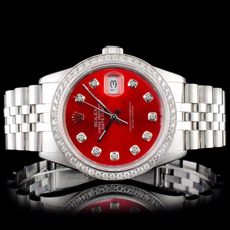 Dial: Custom Red Dial set with Diamond hour markers