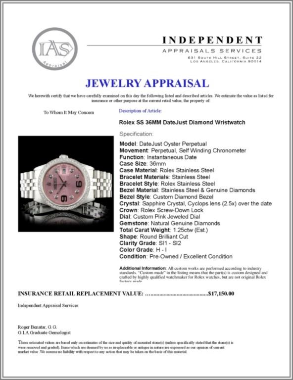 Regarding Appraised Jewelry and Loose Stones - Auctionfarm sends them out to a third party for Retail Replacement Value Appraisals, which are the most common. These types of evaluations are written for insurance needs. This would be the cost to replace the jewelry with an item of equal quality and kind, considered to be the current market price or the replacement value. This type of appraisal is done to protect you in the event of damage or loss of a valuable item. Our appraisals are conducted by independent 3rd Party appraisal firms that utilizes Certified GIA Gemologist. Appraisals should be used for verification of gemstone and/or metal weight, size, and grade only, not actual value. Appraisal value should be considered for insurance purposes only, not actual value, as price varies greatly from retail locations thru out the world. Items should not be purchased with the expectation to resell for appraisal price, or for profit.