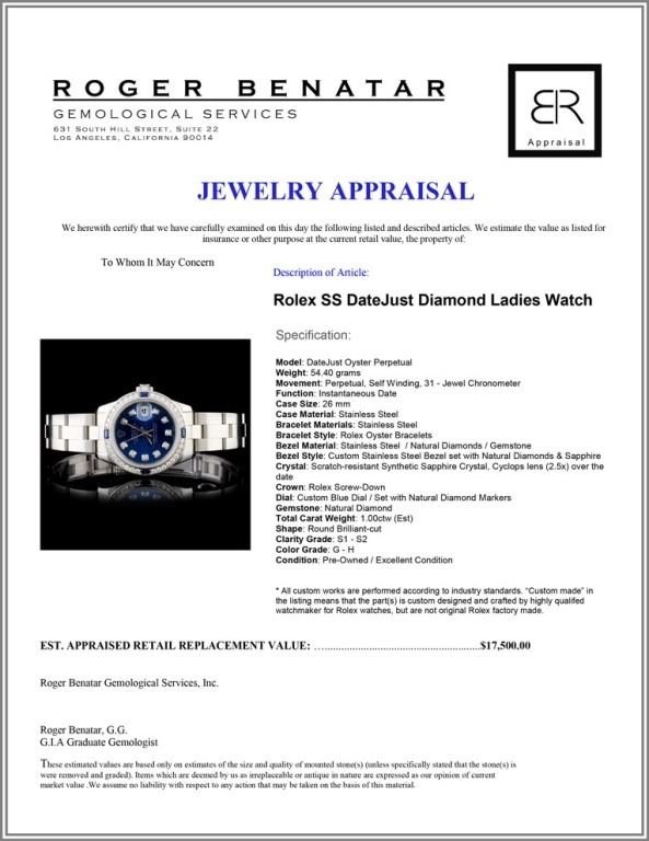 Dial: Custom Blue Dial / Set with Natural Diamond Markers