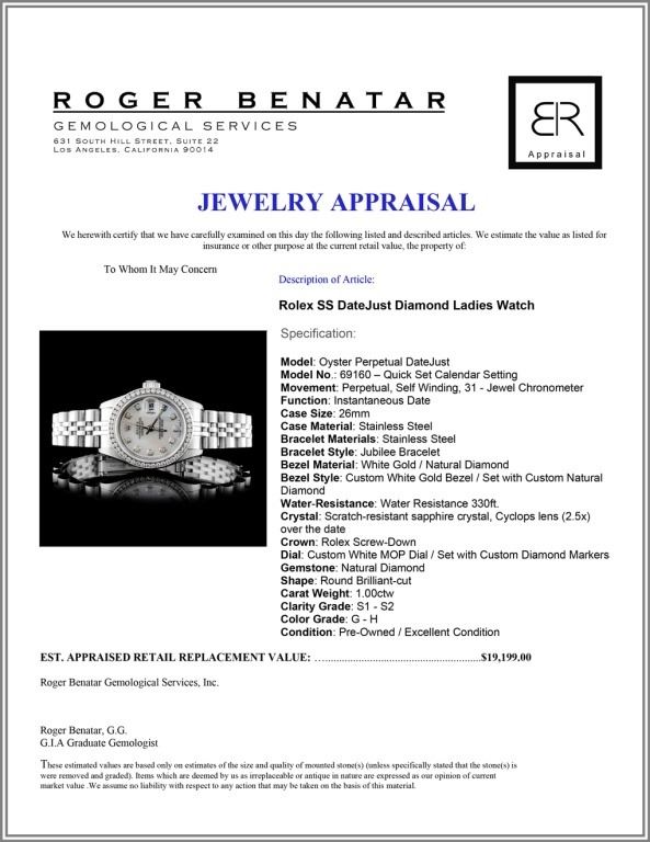 Dial: Custom White MOP Dial / Set with Custom Diamond Markers