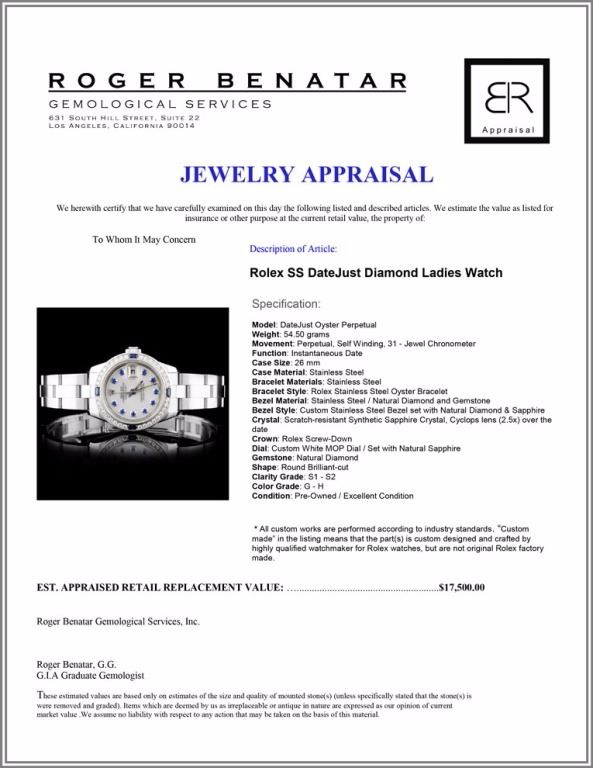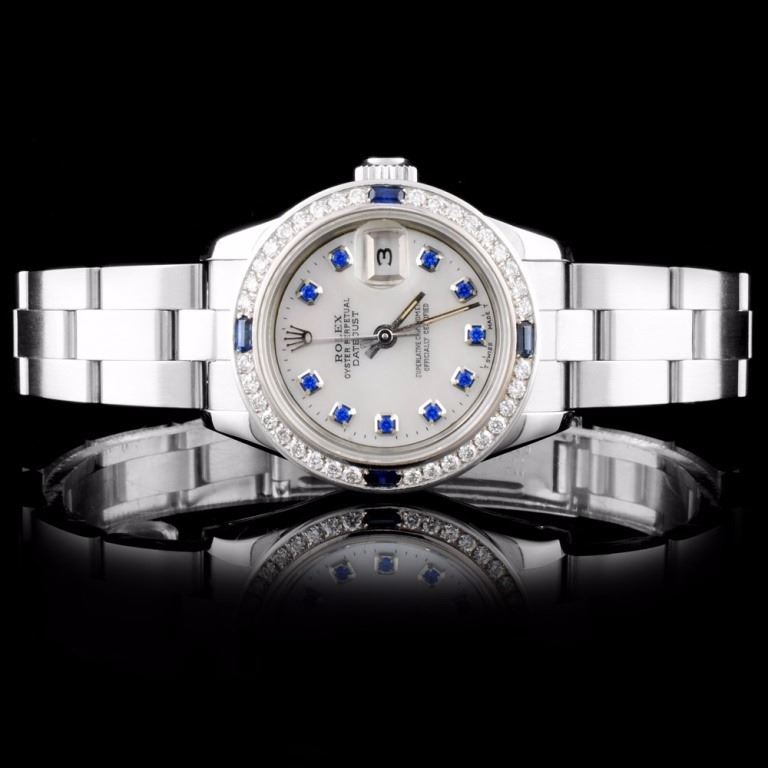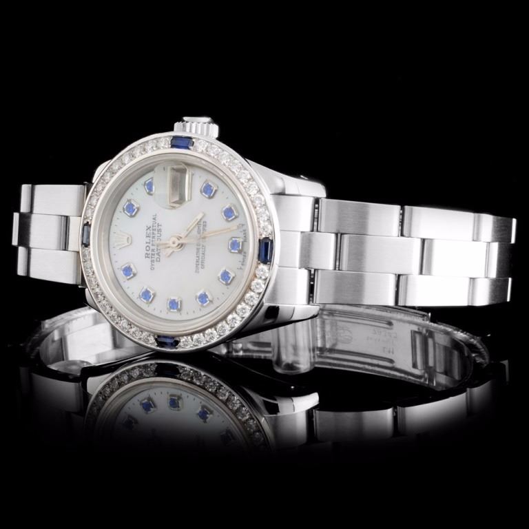 Dial: Custom White MOP Dial / Set with Natural Sapphire