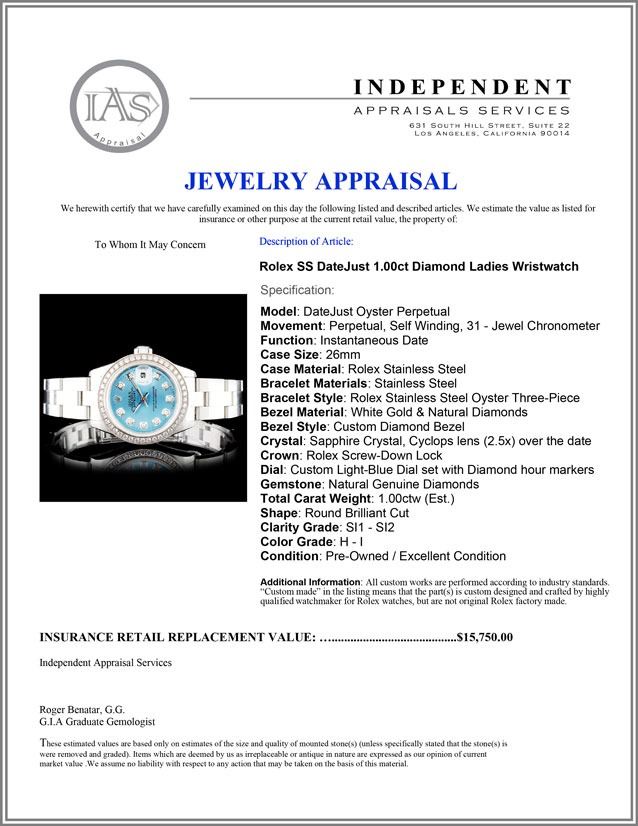 Dial: Custom Light-Blue Dial set with Diamond hour markers