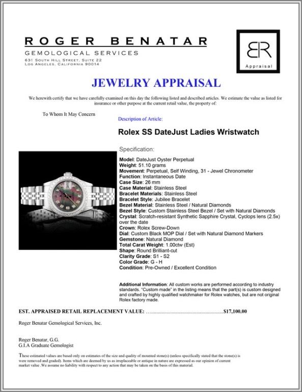 Dial: Custom Black MOP Dial / Set with Natural Diamond Markers