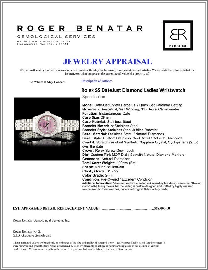 Dial: Custom Pink MOP Dial / Set with Natural Diamond Markers