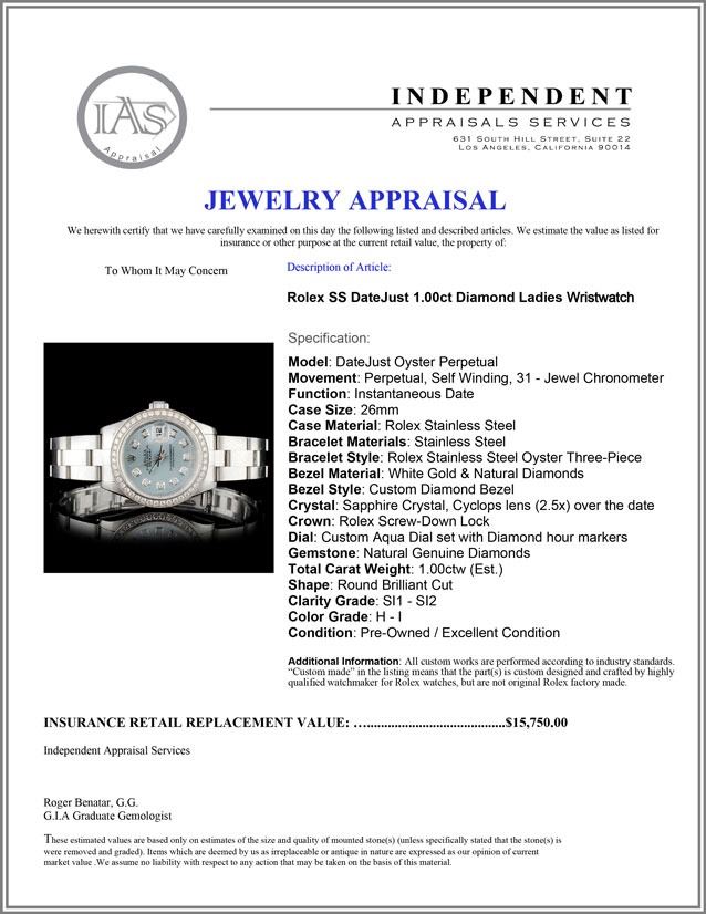 Dial: Custom Aqua Dial set with Diamond hour markers