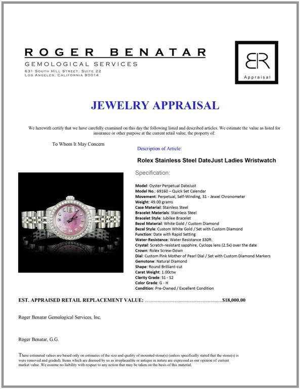 Dial: Custom Pink Mother of Pearl Dial / Set with Custom Diamond Markers