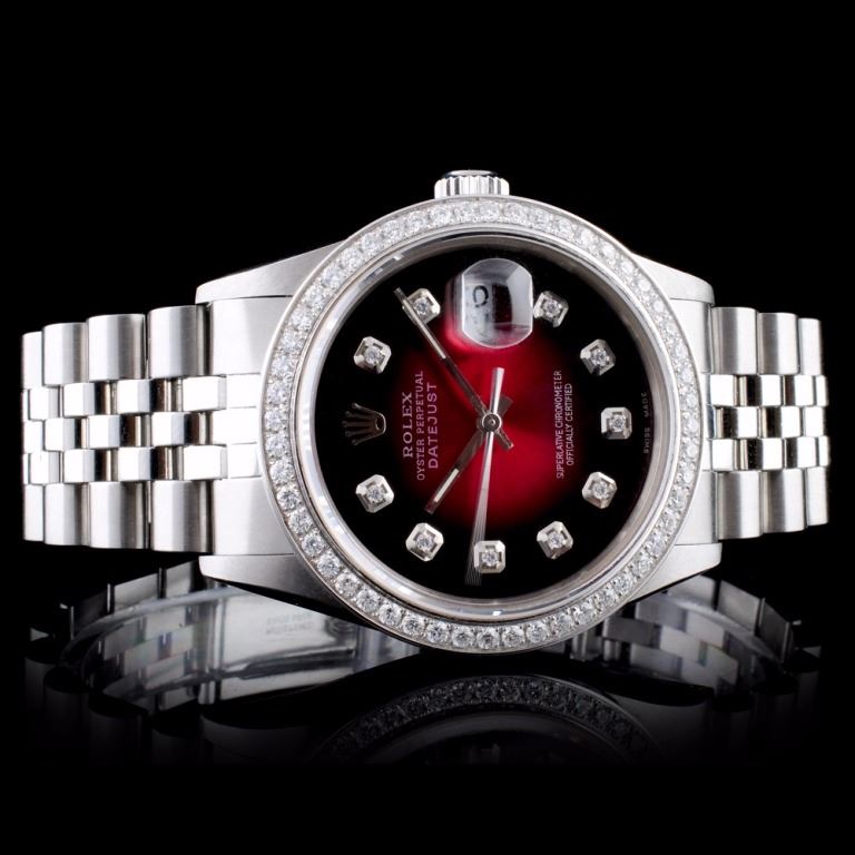 Dial: Custom Red Vignette Dial set with Diamond Hour Markers
