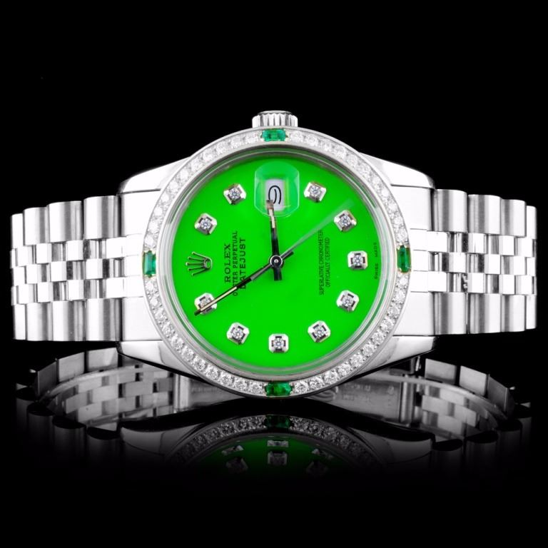 Dial: Custom Green Dial set with Diamond Hour Markers
