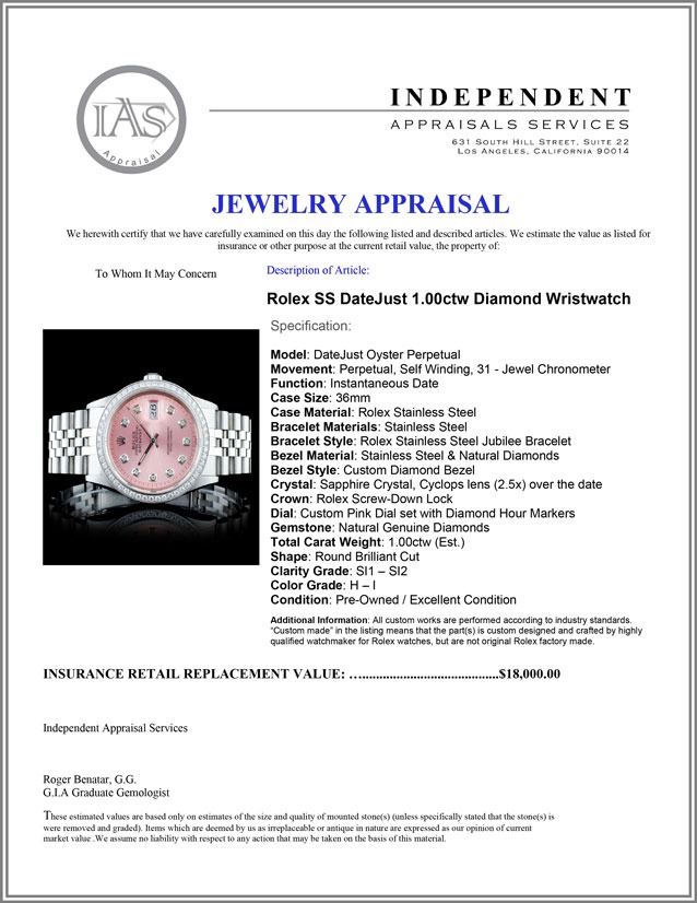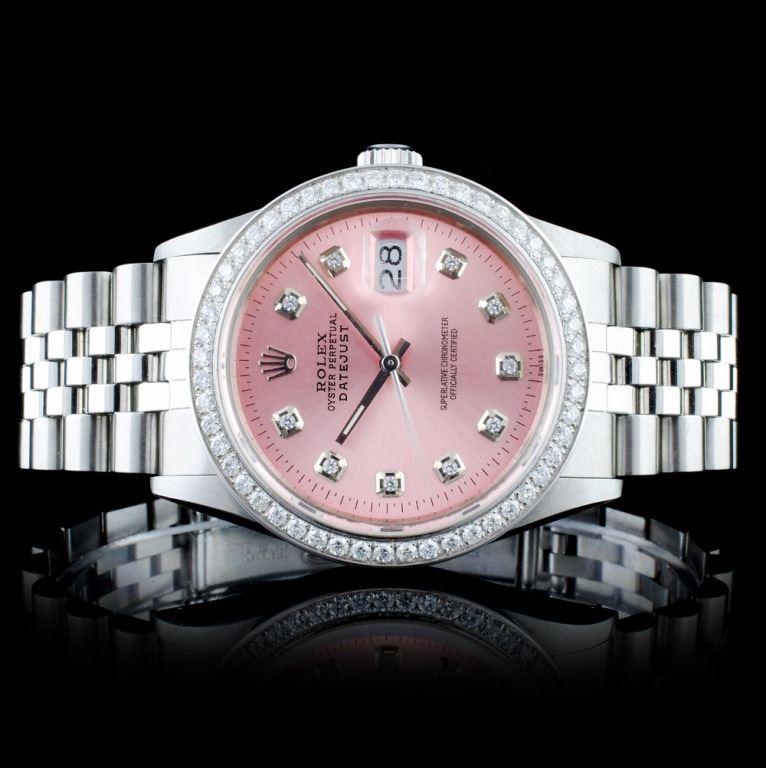 Dial: Custom Pink Dial set with Diamond Hour Markers