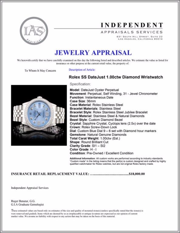 Dial: Custom Blue Dial 9 Ð 6 set with Diamond hour markers