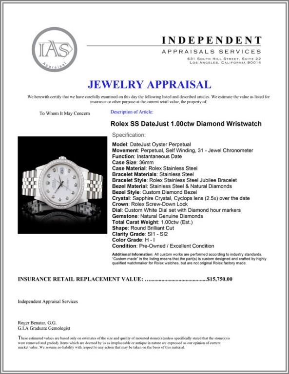 Additional Information: All custom works are performed according to industry standards. ÒCustom madeÓ in the listing means that the part(s) is custom designed and crafted by highly qualified watchmaker for Rolex watches, but are not original Rolex factory made.