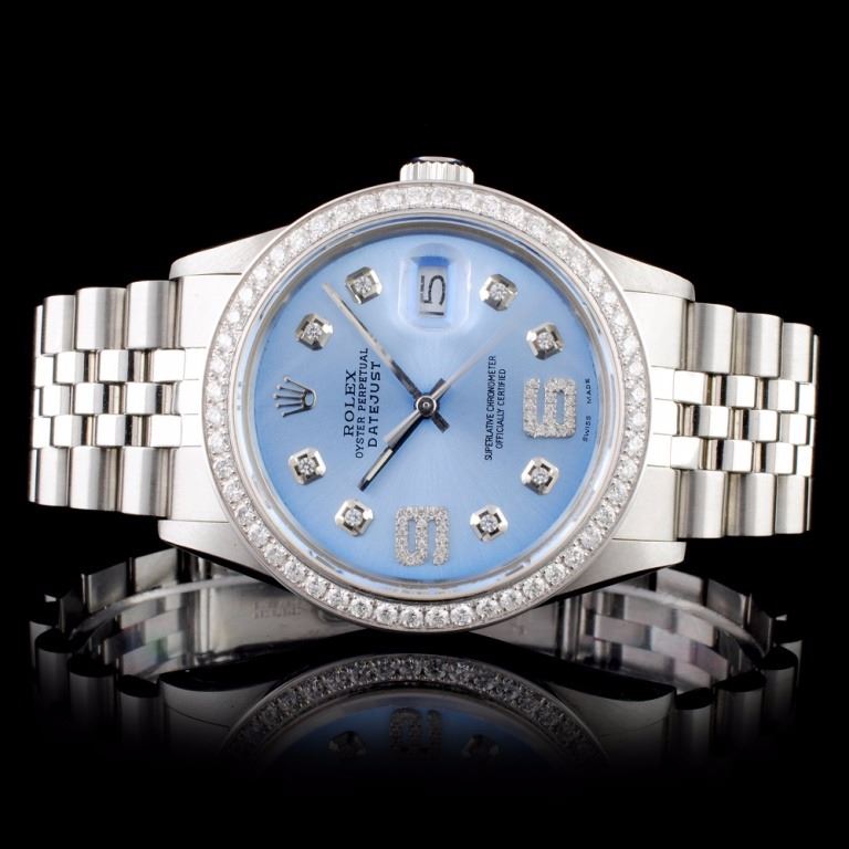 Dial: Custom Blue Dial 9 Ð 6 set with Diamond hour markers