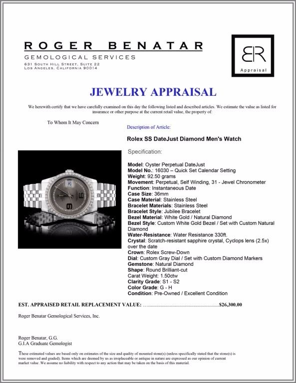 Dial: Custom Gray Dial / Set with Custom Diamond Markers