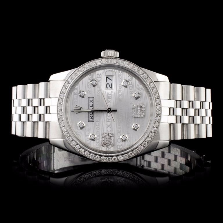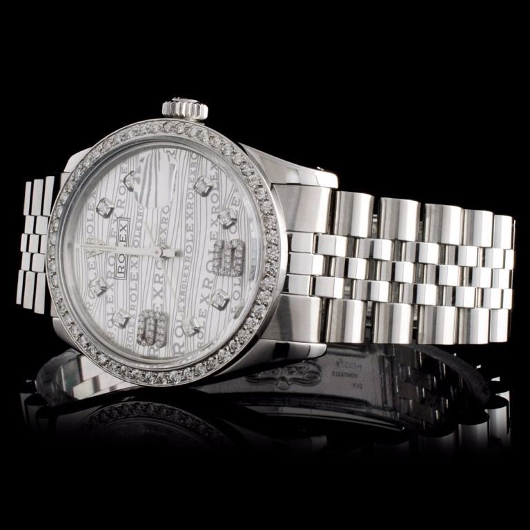 Dial: Custom Rolex Silver Dial / Set with Custom Diamond Arabic Numeral and Markers