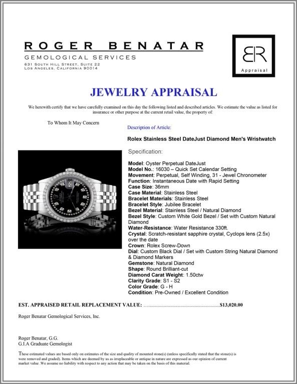 Dial: Custom Black Dial / Set with Custom String Natural Diamond & Markers