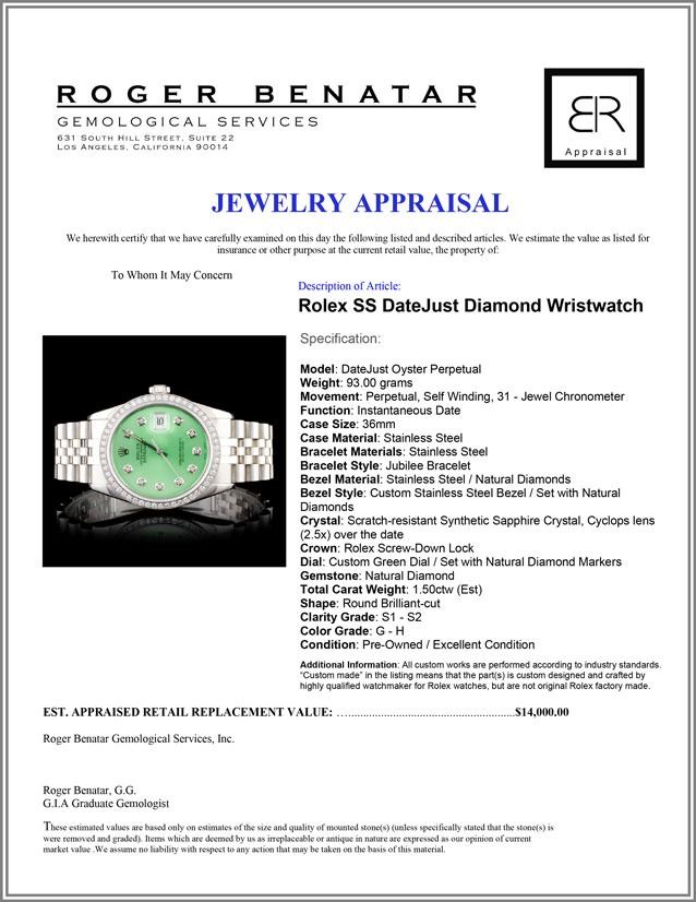 Dial: Custom Green Dial / Set with Natural Diamond Markers