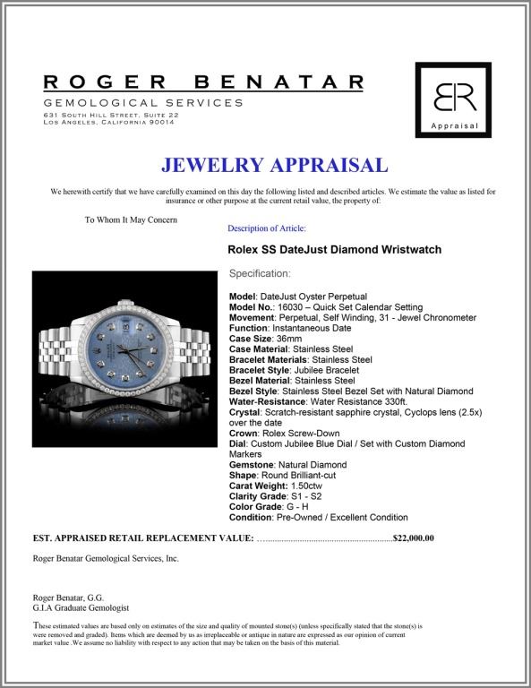 Dial: Custom Jubilee Blue Dial / Set with Custom Diamond Markers