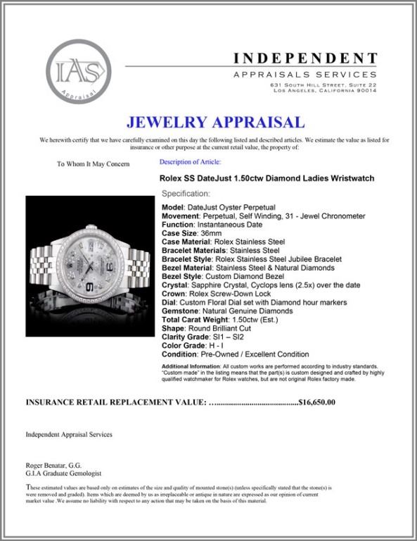 Additional Information: All custom works are performed according to industry standards. ÒCustom madeÓ in the listing means that the part(s) is custom designed and crafted by highly qualified watchmaker for Rolex watches, but are not original Rolex factory made.