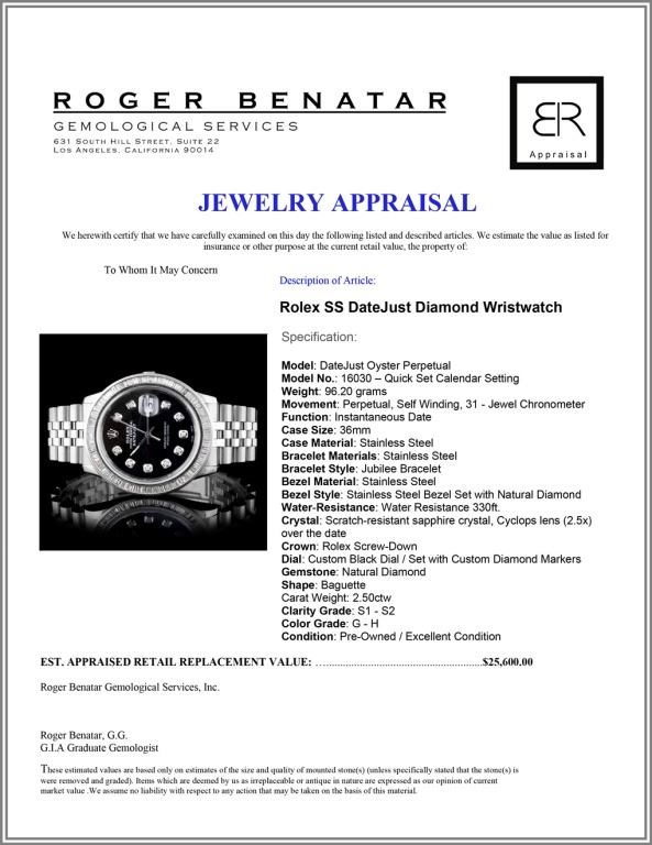 Dial: Custom Black Dial / Set with Custom Diamond Markers