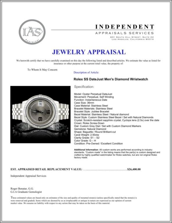 Regarding Appraised Jewelry and Loose Stones - Auctionfarm sends them out to a third party for Retail Replacement Value Appraisals, which are the most common. These types of evaluations are written for insurance needs. This would be the cost to replace the jewelry with an item of equal quality and kind, considered to be the current market price or the replacement value. This type of appraisal is done to protect you in the event of damage or loss of a valuable item. Our appraisals are conducted by independent 3rd Party appraisal firms that utilizes Certified GIA Gemologist. Appraisals should be used for verification of gemstone and/or metal weight, size, and grade only, not actual value. Appraisal value should be considered for insurance purposes only, not actual value, as price varies greatly from retail locations thru out the world. Items should not be purchased with the expectation to resell for appraisal price, or for profit.