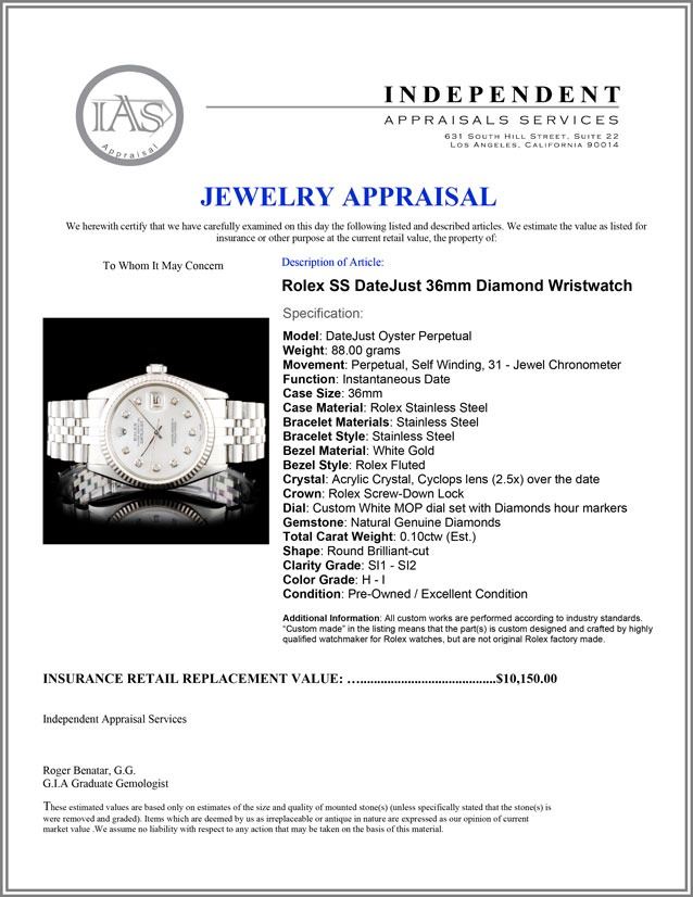 Dial: Custom White MOP dial set with Diamonds hour markers