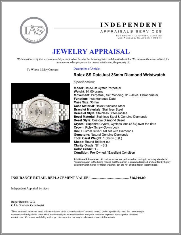Dial: Custom Silver Dial set with Diamonds