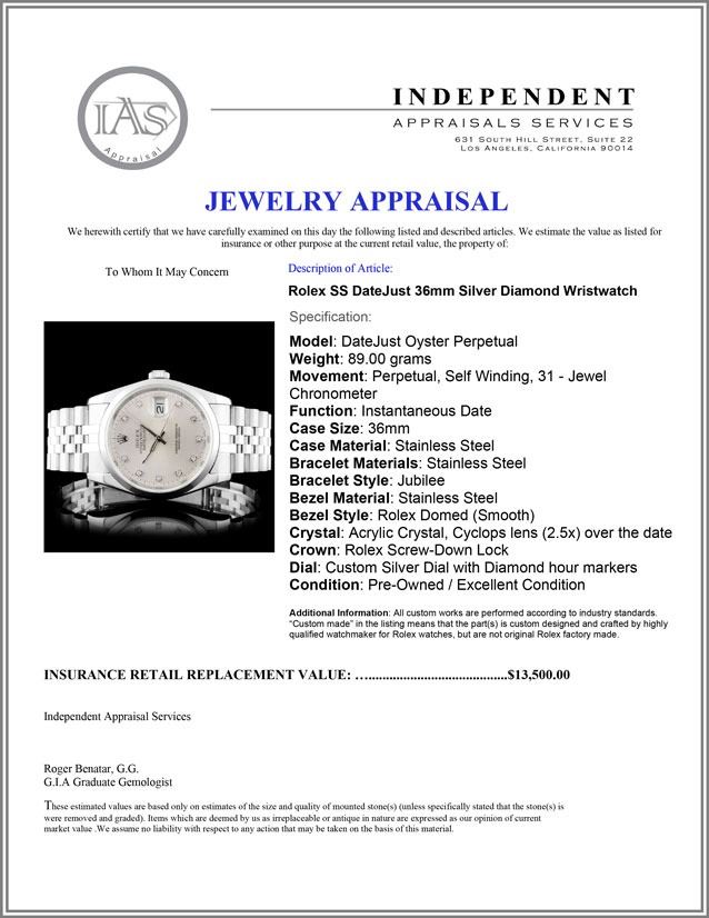 Additional Information: All custom works are performed according to industry standards. ÒCustom madeÓ in the listing means that the part(s) is custom designed and crafted by highly qualified watchmaker for Rolex watches, but are not original Rolex factory made.