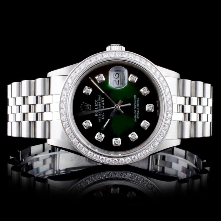 Dial: Custom Green Vignette Dial set with Diamond Hour Markers