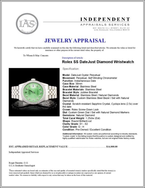 Dial: Custom Green Dial / Set with Natural Diamond Markers