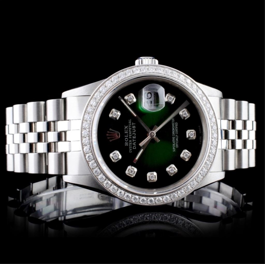 Dial: Custom Green Vignette Dial set with Diamond Hour Markers