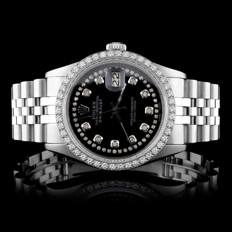 Dial: Custom Black Dial / Set with Custom String Natural Diamond & Markers