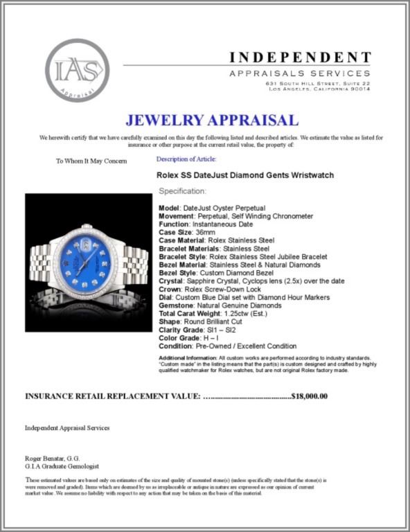 Regarding Appraised Jewelry and Loose Stones - Auctionfarm sends them out to a third party for Retail Replacement Value Appraisals, which are the most common. These types of evaluations are written for insurance needs. This would be the cost to replace the jewelry with an item of equal quality and kind, considered to be the current market price or the replacement value. This type of appraisal is done to protect you in the event of damage or loss of a valuable item. Our appraisals are conducted by independent 3rd Party appraisal firms that utilizes Certified GIA Gemologist. Appraisals should be used for verification of gemstone and/or metal weight, size, and grade only, not actual value. Appraisal value should be considered for insurance purposes only, not actual value, as price varies greatly from retail locations thru out the world. Items should not be purchased with the expectation to resell for appraisal price, or for profit.