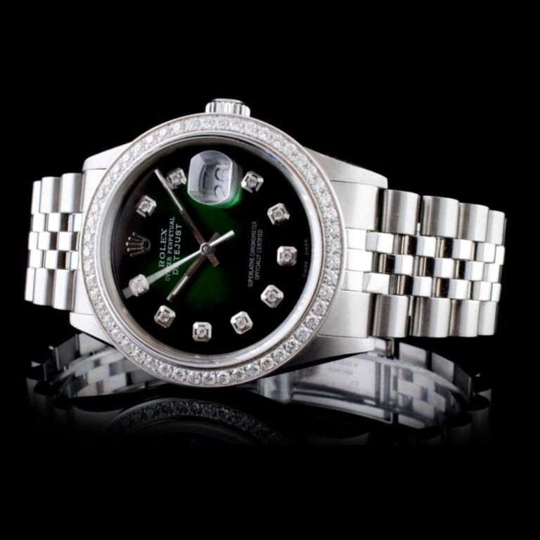 Dial: Custom Green Vignette Dial set with Diamond Hour Markers