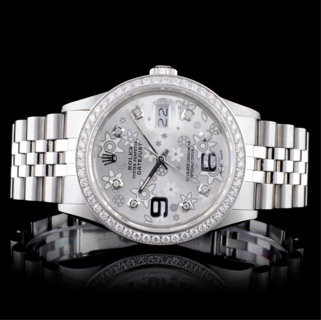 Dial: Custom Floral Dial set with Diamond hour markers