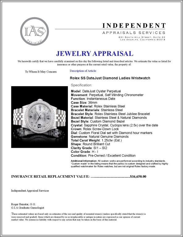 Regarding Appraised Jewelry and Loose Stones - Auctionfarm sends them out to a third party for Retail Replacement Value Appraisals, which are the most common. These types of evaluations are written for insurance needs. This would be the cost to replace the jewelry with an item of equal quality and kind, considered to be the current market price or the replacement value. This type of appraisal is done to protect you in the event of damage or loss of a valuable item. Our appraisals are conducted by independent 3rd Party appraisal firms that utilizes Certified GIA Gemologist. Appraisals should be used for verification of gemstone and/or metal weight, size, and grade only, not actual value. Appraisal value should be considered for insurance purposes only, not actual value, as price varies greatly from retail locations thru out the world. Items should not be purchased with the expectation to resell for appraisal price, or for profit.