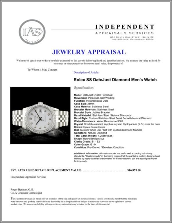 Dial: Custom White Dial / Set with Custom Diamond Markers