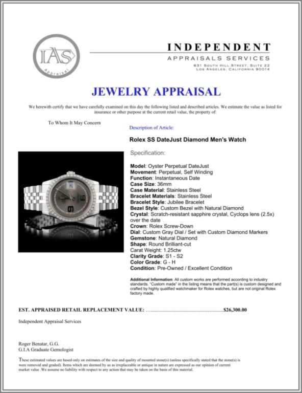 Regarding Appraised Jewelry and Loose Stones - Auctionfarm sends them out to a third party for Retail Replacement Value Appraisals, which are the most common. These types of evaluations are written for insurance needs. This would be the cost to replace the jewelry with an item of equal quality and kind, considered to be the current market price or the replacement value. This type of appraisal is done to protect you in the event of damage or loss of a valuable item. Our appraisals are conducted by independent 3rd Party appraisal firms that utilizes Certified GIA Gemologist. Appraisals should be used for verification of gemstone and/or metal weight, size, and grade only, not actual value. Appraisal value should be considered for insurance purposes only, not actual value, as price varies greatly from retail locations thru out the world. Items should not be purchased with the expectation to resell for appraisal price, or for profit.