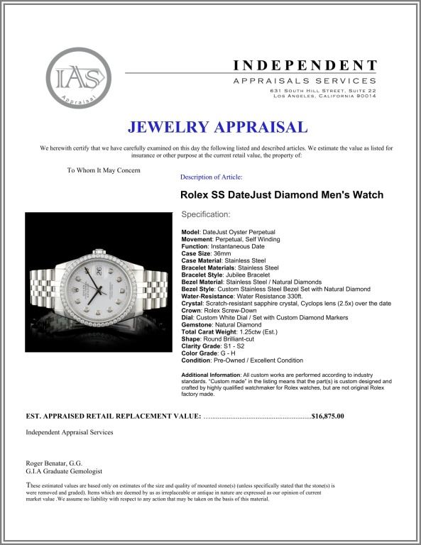 Dial: Custom White Dial / Set with Custom Diamond Markers
