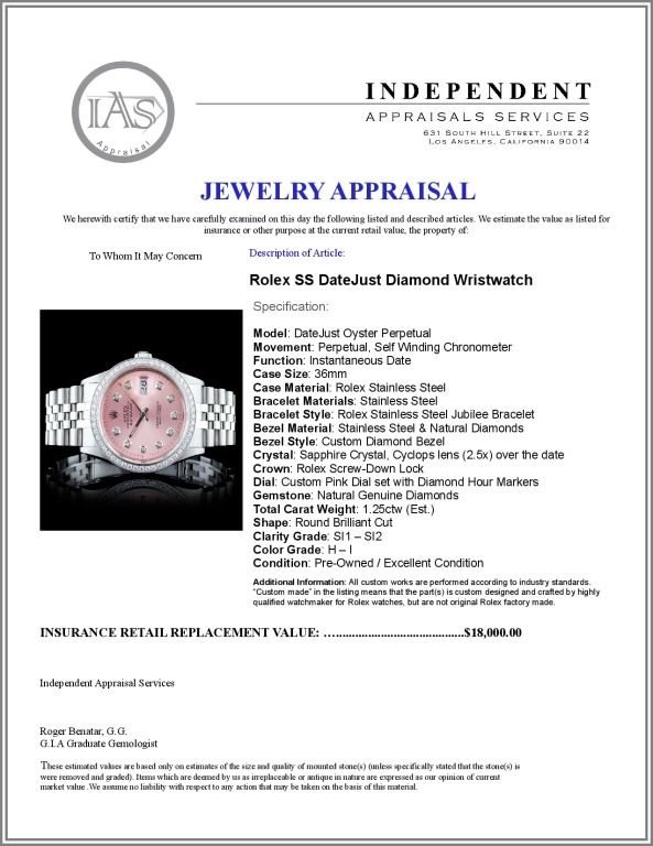 Dial: Custom Pink Dial set with Diamond Hour Markers