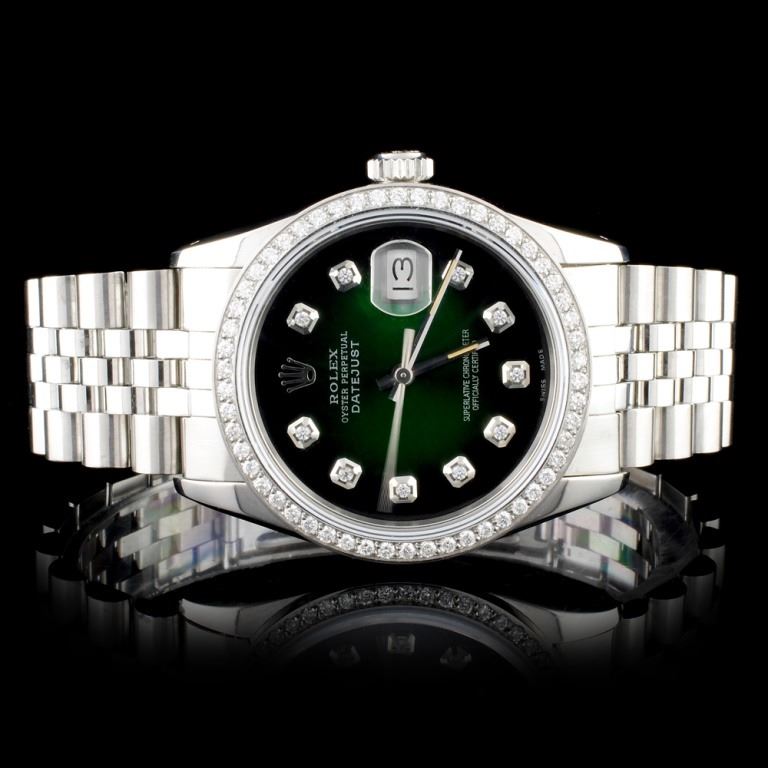 Estimated Retail Replacement Value: $28,990.00Ref: BAS30000Item no.: ARXAA-002Specification:Documents: Appraisal ReportModel: Rolex SubmarinerMovement: Perpetual, Self-windingCase Material: Stainless SteelBracelet Materials: Stainless Steel & Yellow GoldBracelet Style: Rolex Oyster, Flat Three Piece LinksBezel Material: Yellow GoldBezel Style: Unidirectional rotatable 60-minutes BezelWinding Crown: Rolex screw down, Triplock triple waterproofness system / Water Resistance 330ft.Winding: Bidirectional self-winding via Perpetual rotorDial: *Custom Silver ÒSertiÓ Jeweled Dial Crystal: Scratch-Resistant Sapphire, Cyclops lens (2.5x) over the dateCondition: Pre-Owned / Excellent ConditionAdditional Information: All custom works are performed according to industry standards. ÒCustom madeÓ in the listing means that the part(s) is custom designed and crafted by highly qualified watchmaker for Rolex watches, but are not original Rolex factory made. Great Condition - Shipping notes: We ship 4-10 Business day after the clearance of payment. Tracking numbers are emailed once the package(s) are shipped. Most shipments are sent by FEDEX Priority, UPS Priority, or US PRIORITY MAIL INSURED