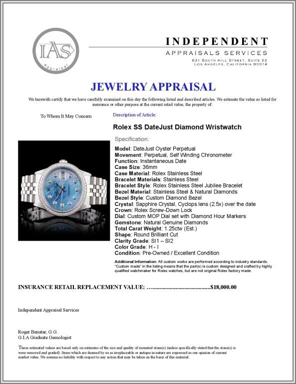 Regarding Appraised Jewelry and Loose Stones - Auctionfarm sends them out to a third party for Retail Replacement Value Appraisals, which are the most common. These types of evaluations are written for insurance needs. This would be the cost to replace the jewelry with an item of equal quality and kind, considered to be the current market price or the replacement value. This type of appraisal is done to protect you in the event of damage or loss of a valuable item. Our appraisals are conducted by independent 3rd Party appraisal firms that utilizes Certified GIA Gemologist. Appraisals should be used for verification of gemstone and/or metal weight, size, and grade only, not actual value. Appraisal value should be considered for insurance purposes only, not actual value, as price varies greatly from retail locations thru out the world. Items should not be purchased with the expectation to resell for appraisal price, or for profit.